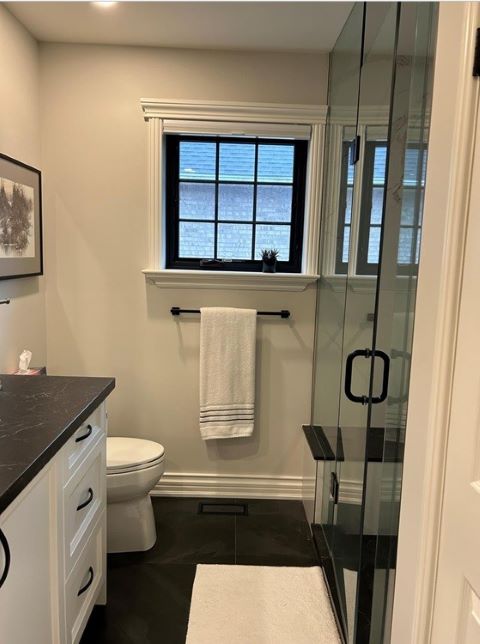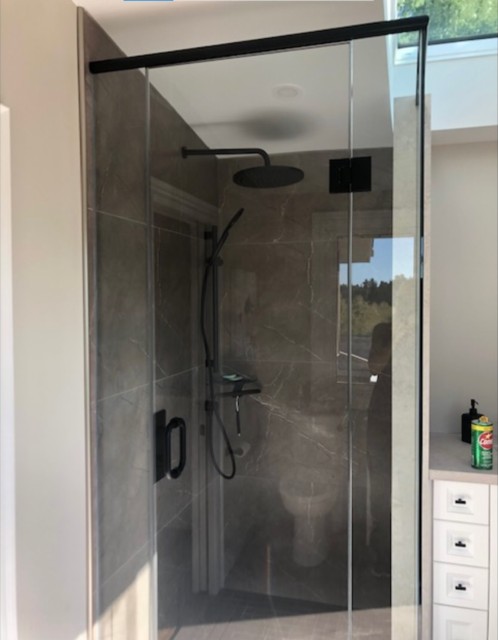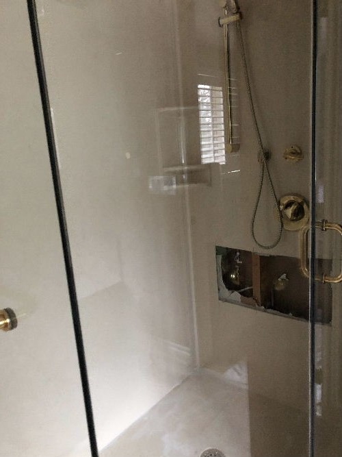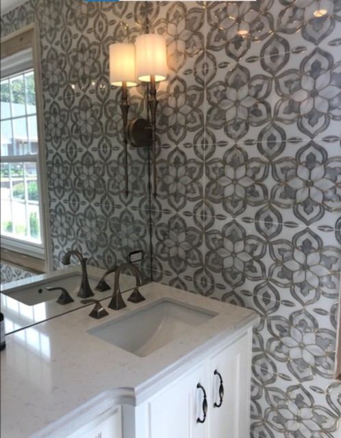 Jazz up your bathroom. Note the multi-function shower fixture & curbless shower entrance.