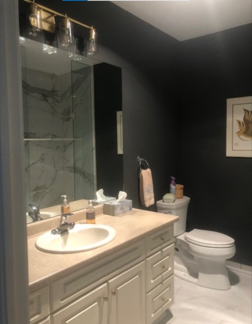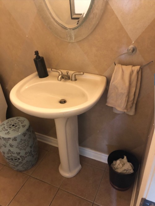 A cute little bathroom reno. Got rid of an old pedestal sink, turned a small